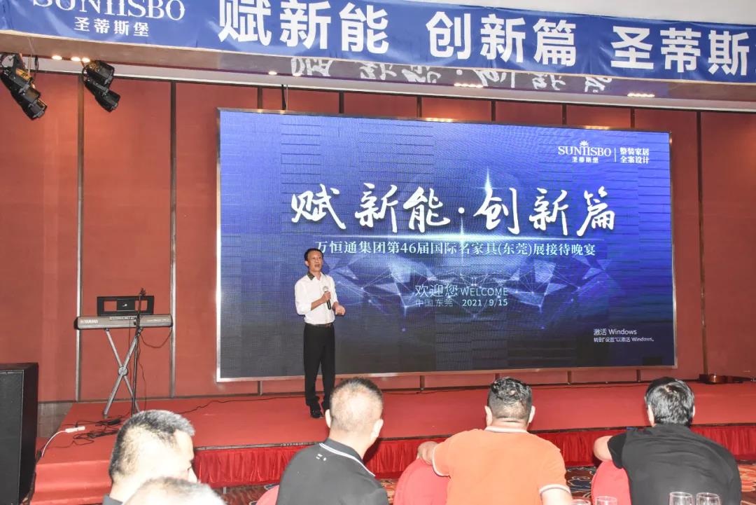 9月15日晚6时许,以“创新能,赋新篇”为主题的米兰集团集团第46届国际家具展接待晚宴在虎门丰泰花园酒店举行。